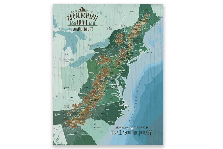 Appalachian Trail Map Poster, Color options available โ World Vibe
