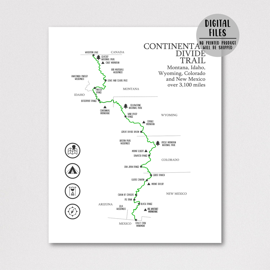 Continental Divide Trail Map Poster – Over two years, they hiked the entire 2,600-mile trail. But Phoebe had bigger plans. It sounded idyllic, to become one of the youngest girls ever to solo-hike the Continental Divide Trail. . Along with the Continental Divide, there is an American trail that starts at the border between New Mexico and the Mexican state of Chihuahua and extends north to the border between Montana and .