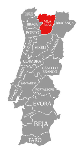 Вила Реал Красный Выделен На Карте Португалии — стоковая векторная